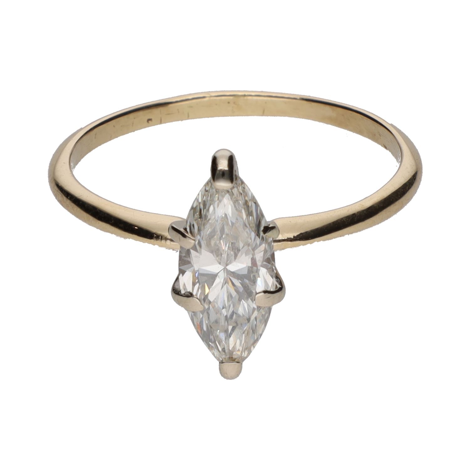 Sortija en oro amarillo con diamante marquise. Talla 13.