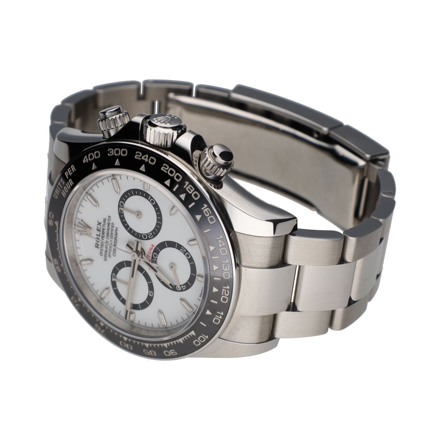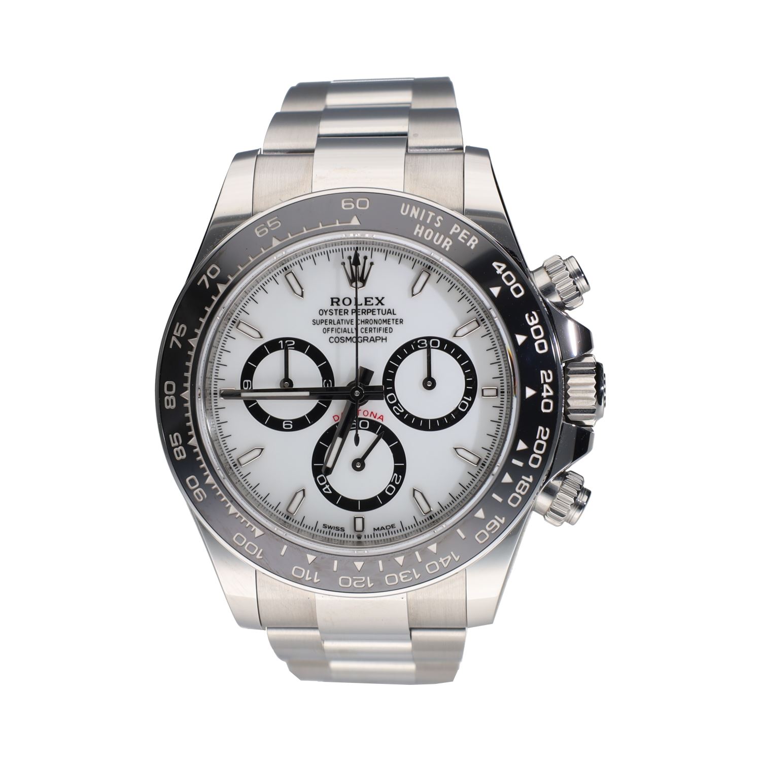 Daytona acero esfera blanca cerámico.