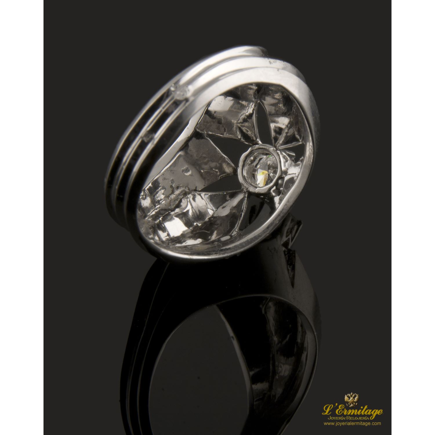 Solitario en oro blanco y brillante.
