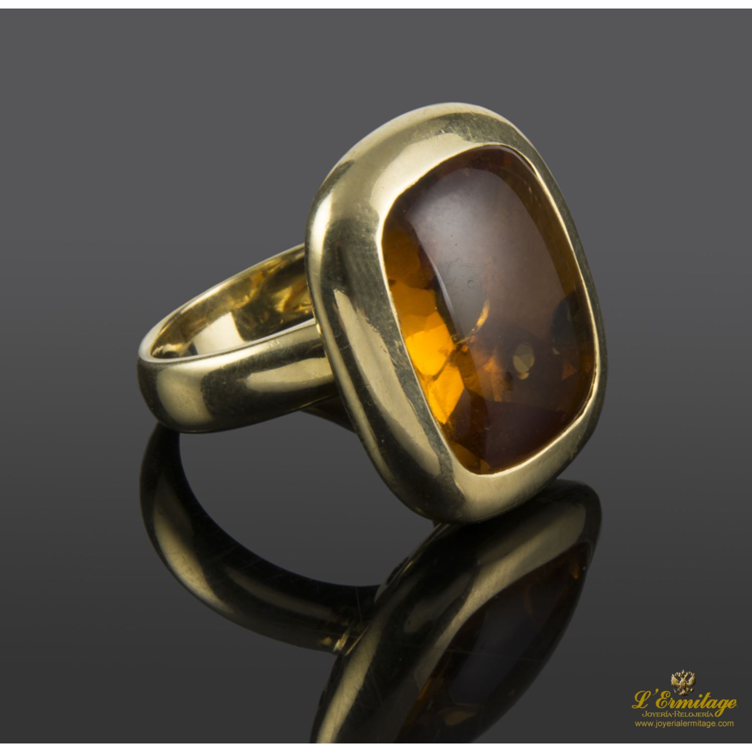 SORTIJA REALIZADA EN ORO AMARILLO CON UN TOPACIO LISO ENGASTADO A CINCEL.