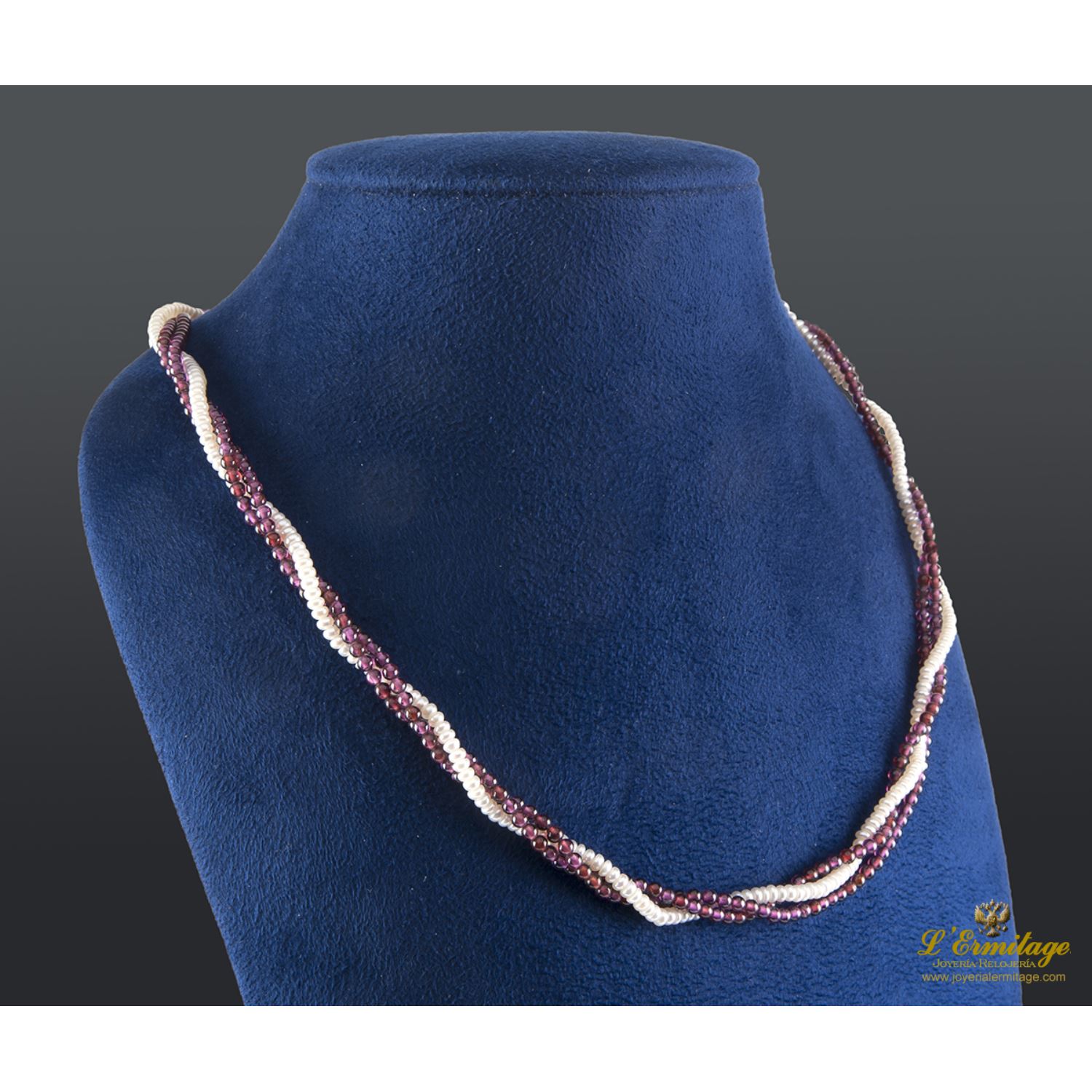 Gargantilla realizada con cuentas de coral natural y perlas cultivadas.