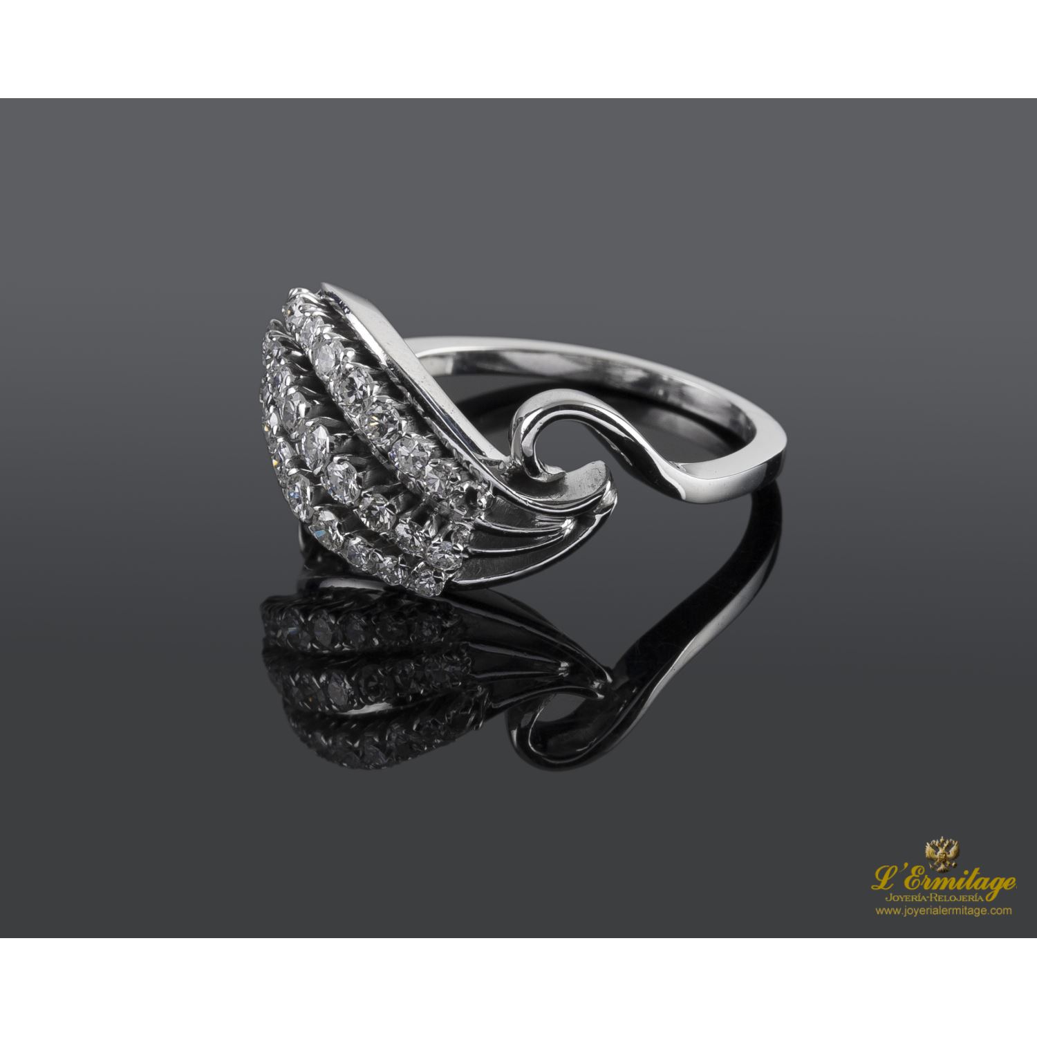 Sortija antigua oro blanco y diamantes.