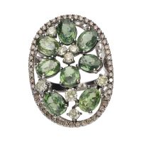 Sortija realizada en oro blanco. Presenta forma oval con motivos florales compuestos de brillantes y citrinos. Orla de brillantes engastados en garras y brillantes en brazos.