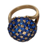 Sortija realizada en oro amarillo. Presenta cuajado en forma bombé con zafiros engastados en garras. Talla 15.