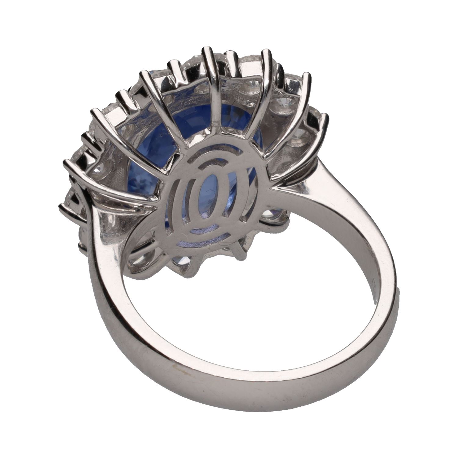 Sortija en oro blanco con zafiro y brillantes.