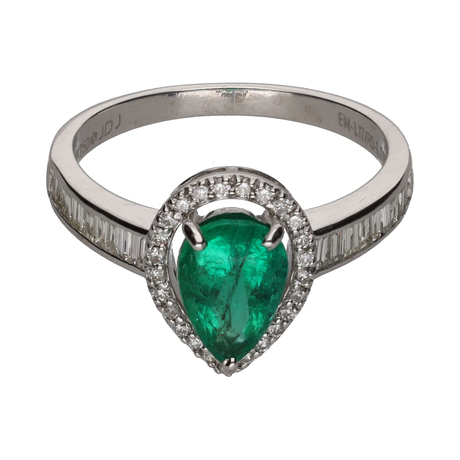 Sortija realizada en oro blanco con esmeralda y diamantes. Talla 15.
