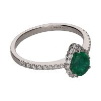 Sortija realizada en oro blanco con esmeralda y brillantes. Talla 14.