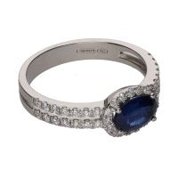 Sortija realizada en oro blanco con un zafiro y brillantes. Talla 14.