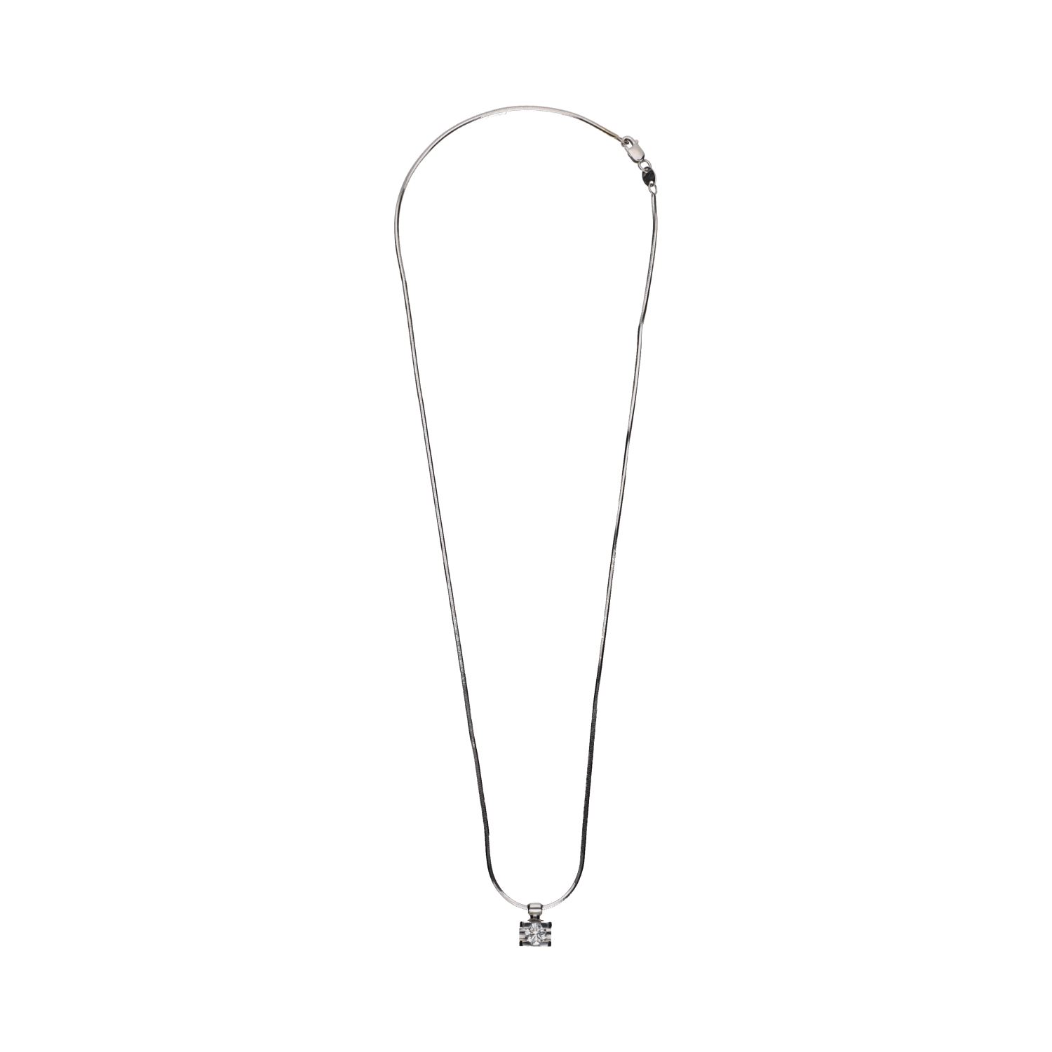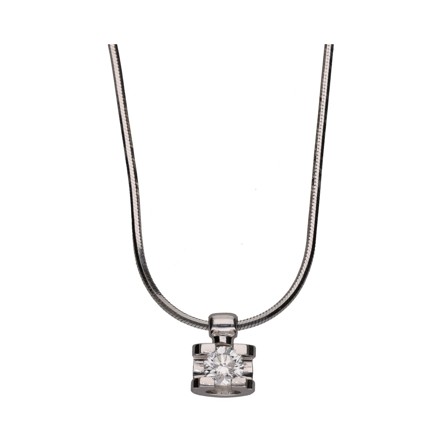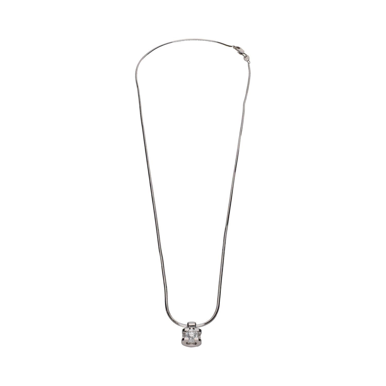 Collar solitario realizado en oro blanco con un brillante engastado en garras anchas.