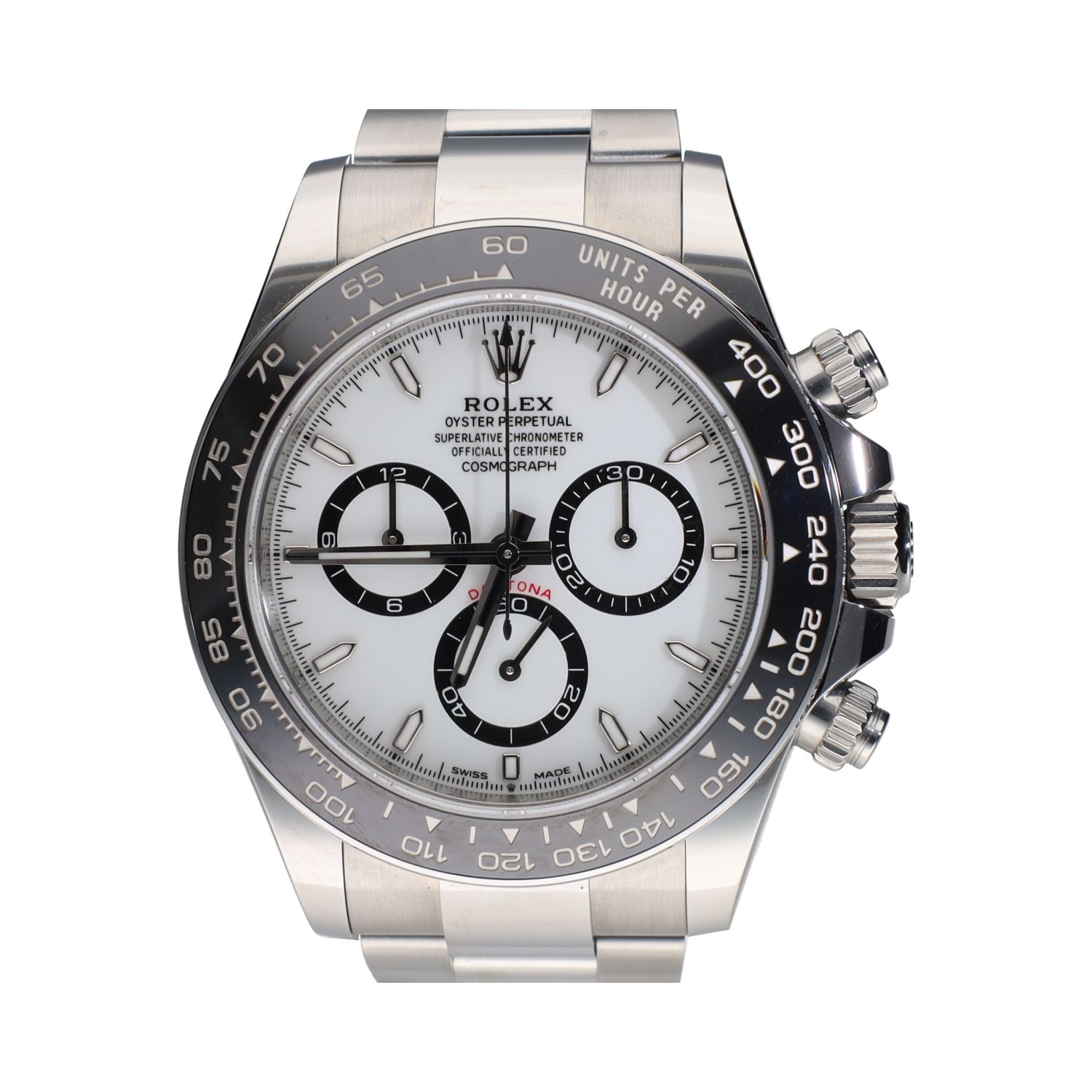 Daytona acero esfera blanca cerámico.
