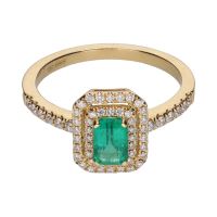 Sortija realizada en oro amarillo con esmeralda y brillantes. Talla 14.